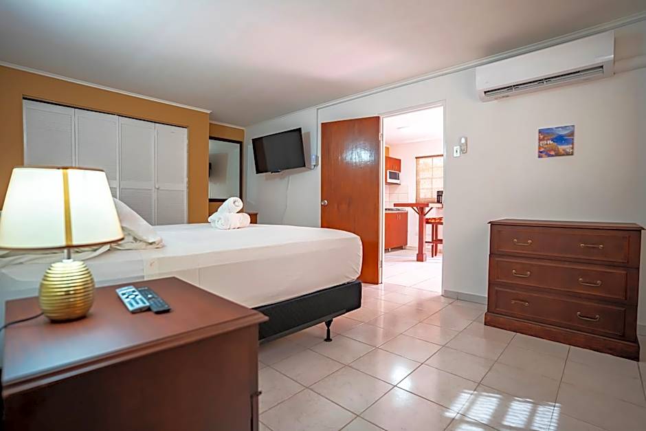 This room features free Wi-Fi, air conditioning, wardrobe, flat-screen cable TV, kitchenette with stove, coffee maker, microwave and fridge. This room type has a queen bed, and the bathroom is private.